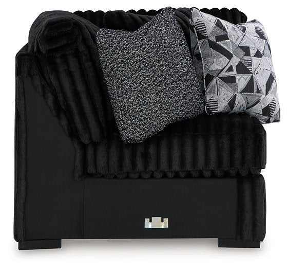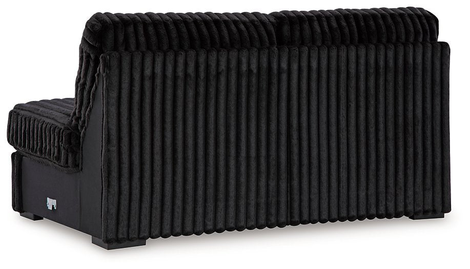 - Low-profile accent legs with faux wood finish