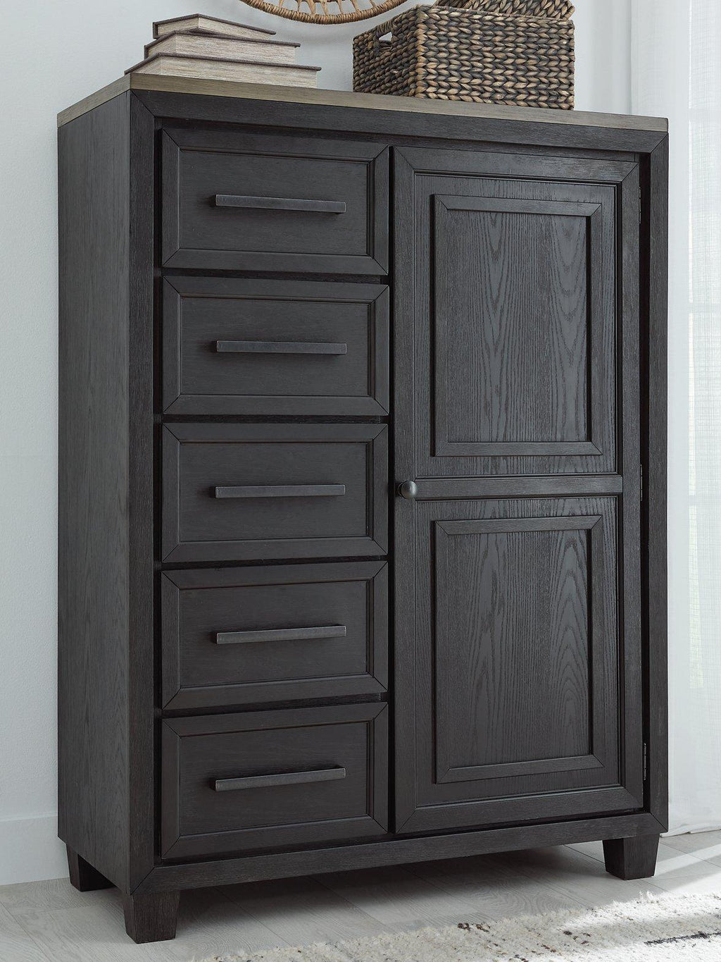 - 5 soft-close, smooth-gliding drawers with fully finished interiors and dovetail construction (top drawers felt lined)