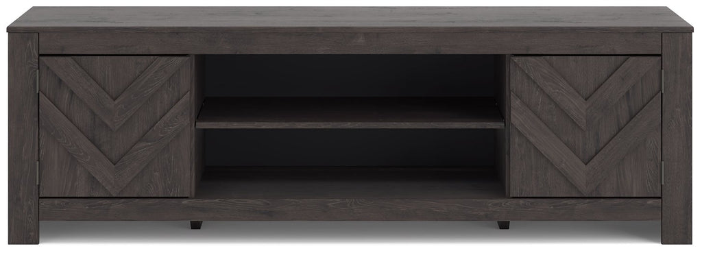 - Integrated door pulls; 2 cabinets, each with an adjustable shelf