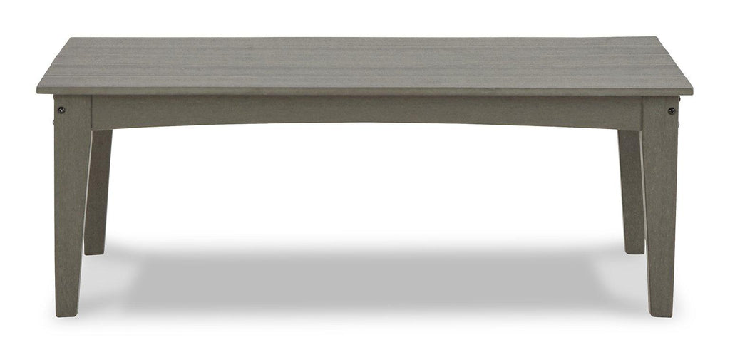 - Gray finish with textured wood look
