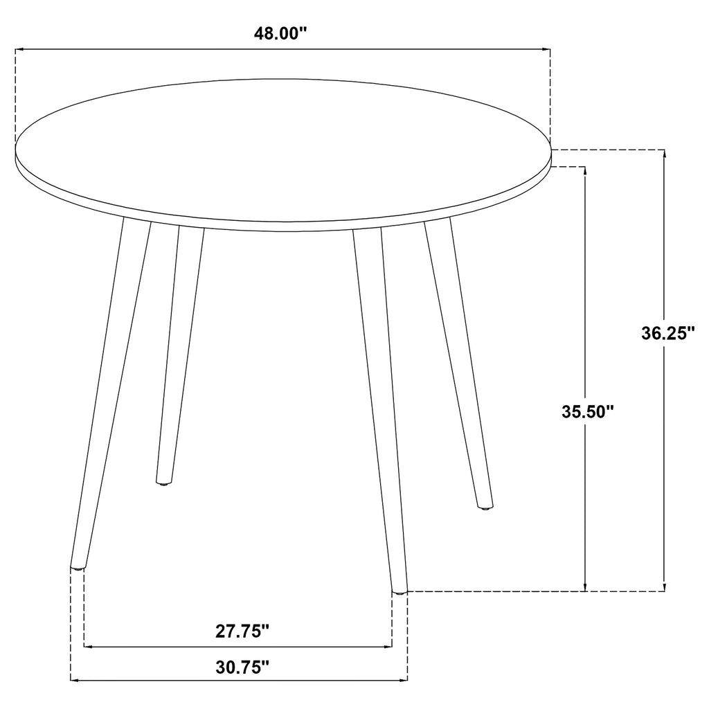 Elevated with charm and simplicity, this round counter height table brings mid-century warmth to casual dining. Its smooth circular top rests on tapered legs, offering a sculptural silhouette that feels both light and grounded. Crafted from solid rubberwood with ash veneer over engineered wood, the natural grain glows beneath a light ash finish. Perfect for kitchen islands, dining nooks, or relaxed gathering spaces. Key Features: • Round counter height dining table in light ash finish blends modern shape with classic warmth • Smooth tabletop offers a raised surface for casual meals, drinks, or entertaining guests • Tapered legs add sculptural simplicity while supporting the elevated round profile • Ideal for compact dining areas, breakfast corners, or casual kitchen bar settings • Crafted from solid rubberwood, ash veneer, and engineered wood for strength and style • Light ash wood grain finish pairs easily with matching stools or complementary seating