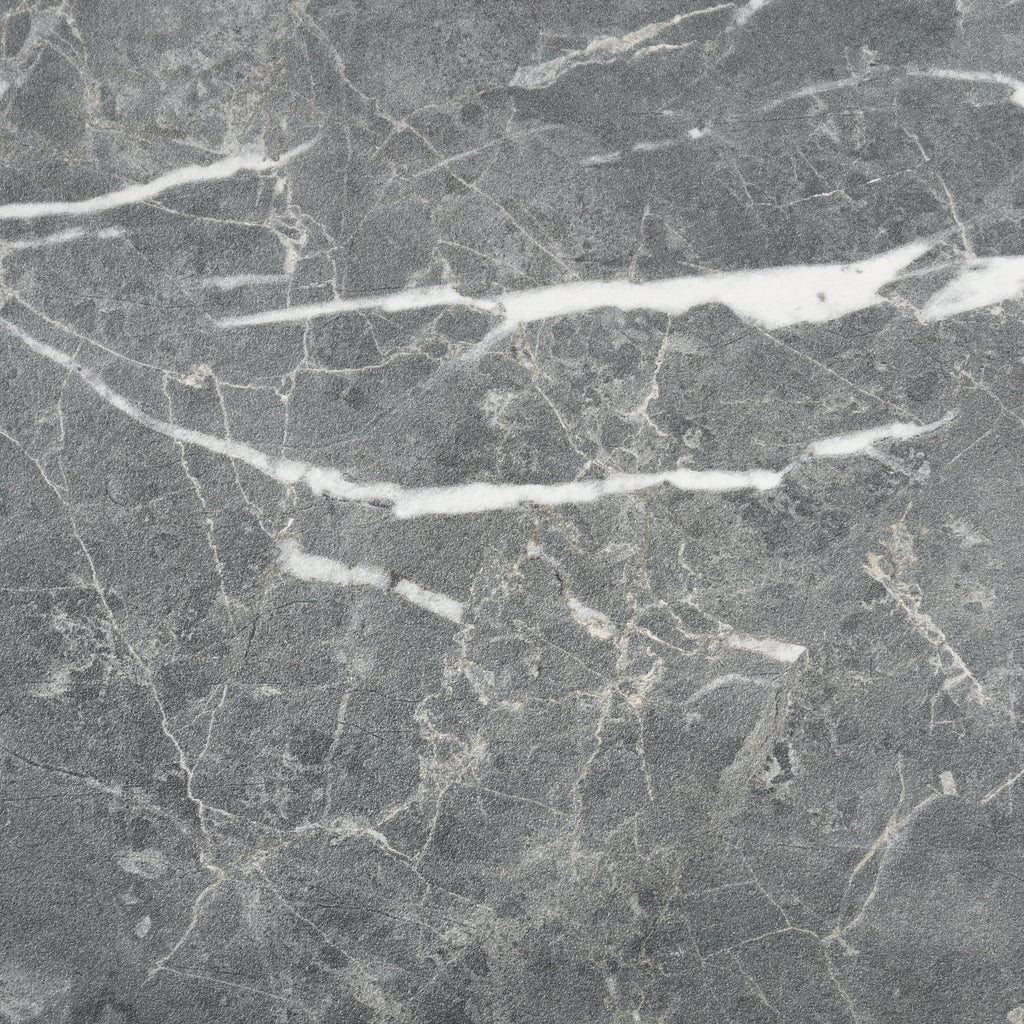 This contemporary dining set balances striking form with practical innovation. The round table showcases a Smart Top surface in faux grey marble, offering heat, scratch, stain, and break resistance for everyday use. Its conical pedestal base in dark oak assembles easily with interlocking panels and tension lever table lock. Coordinating side chairs feature grey fabric upholstery with diamond-quilted backs, padded seats, and dark oak tapered legs. Crafted from solid rubberwood, this set comfortably seats four to six. Key Features: • Round dining set with faux grey marble Smart Top table and coordinating upholstered chairs • Tabletop is heat, stain, scratch, and break resistant with easy-to-clean laminate surface • Inverted conical pedestal base in dark oak assembles with tension lever table lock • Dining chairs feature padded seats and curved backs for comfort and support • Diamond-quilted grey upholstery adds tailored style and subtle texture • Seats four to six with sturdy solid rubberwood construction throughout
