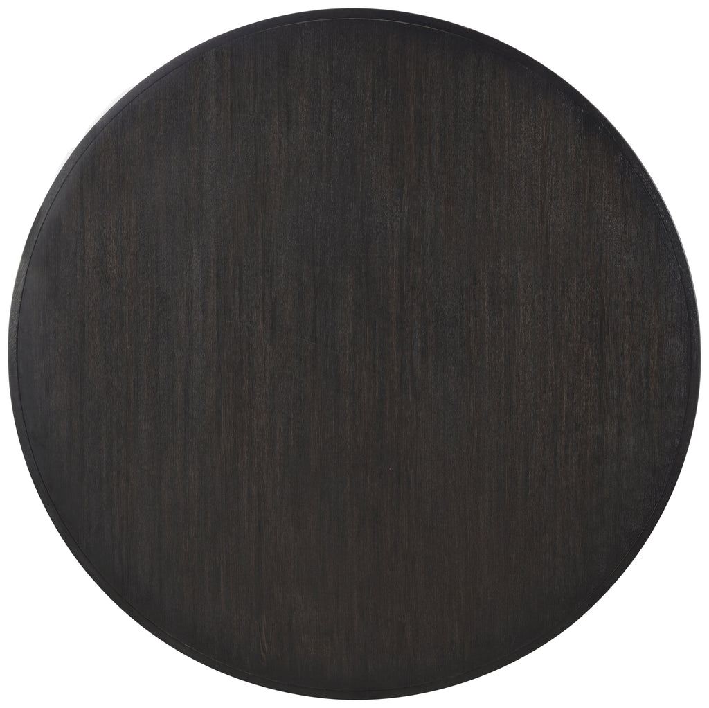 Gather around quiet sophistication with this round dining table, where graceful curves and sculptural presence invite connection. Cloaked in a deep burnished black finish, the broad circular top rests on a bold pedestal base with softened edges and an airy center, striking a perfect balance between strength and openness. Whether shared over candlelight or everyday meals, this table becomes the heart of the room—timeless, grounded, and welcoming. Key Features: • Sixty-inch round dining table finished in burnished black for a dramatic modern presence • Solid pedestal base with open center offers sculptural stability and geometric style • Soft curved edges along the top and base bring visual flow and balance • Perfect scale for intimate dining rooms or relaxed family gatherings • Crafted from ash veneer, solid rubberwood, and engineered wood • Refined silhouette provides a strong foundation with a subtle, graceful feel