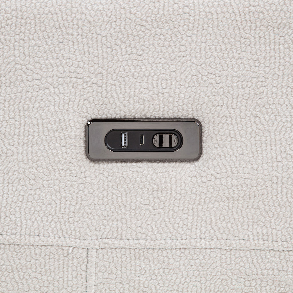 Retreat into relaxation with this chenille power recliner chair designed for everyday indulgence. A smooth, push-button reclining mechanism lets you find your ideal position with ease. Wrapped in richly textured chenille and supported by a strong metal frame, it offers the perfect blend of plush comfort and durable design. Ideal for solo lounging, this chair brings quiet luxury and functional ease to any living space. Key Features: • Power recliner offers smooth, quiet reclining at the touch of a button • Ivory chenille upholstery features a soft feel and refined textured weave • Generously padded headrest and arms enhance relaxation and support • One-touch control allows seamless transitions to your ideal position • Durable metal framing ensures everyday strength and long-term use • Polyester chenille combines plush comfort with easy-care maintenance
