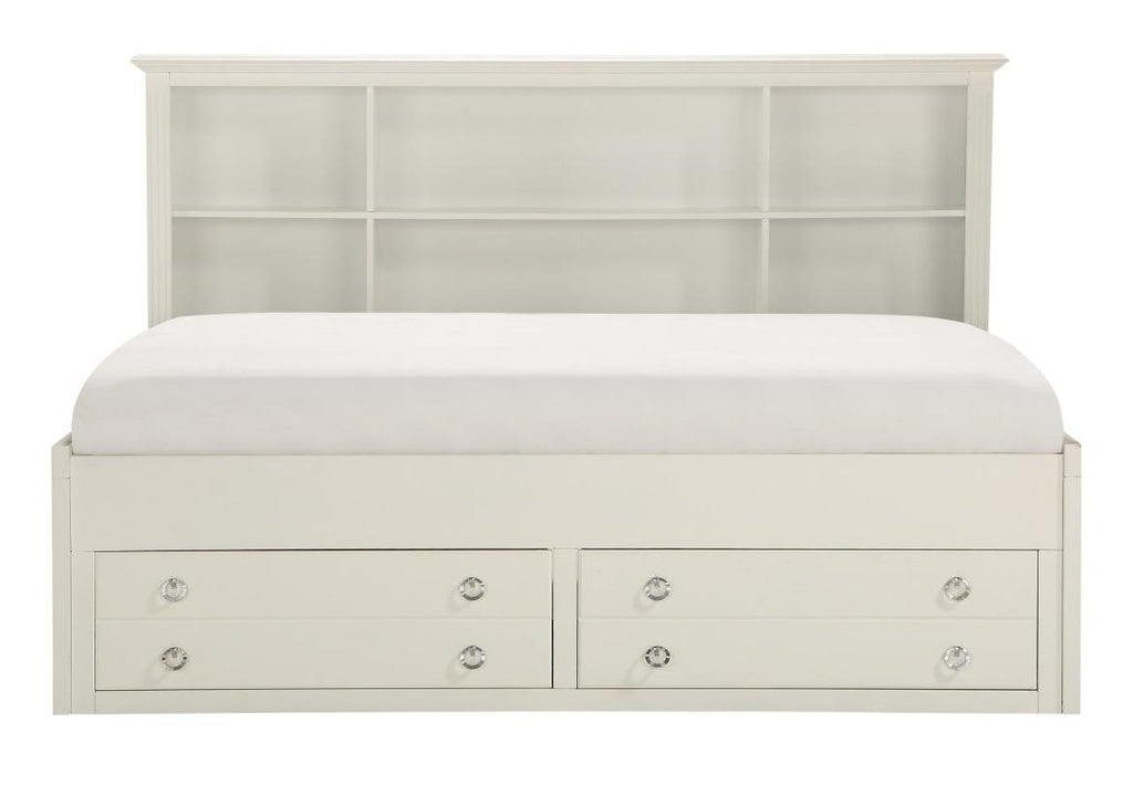 - Bookcase headboard with 6 storage cubbies